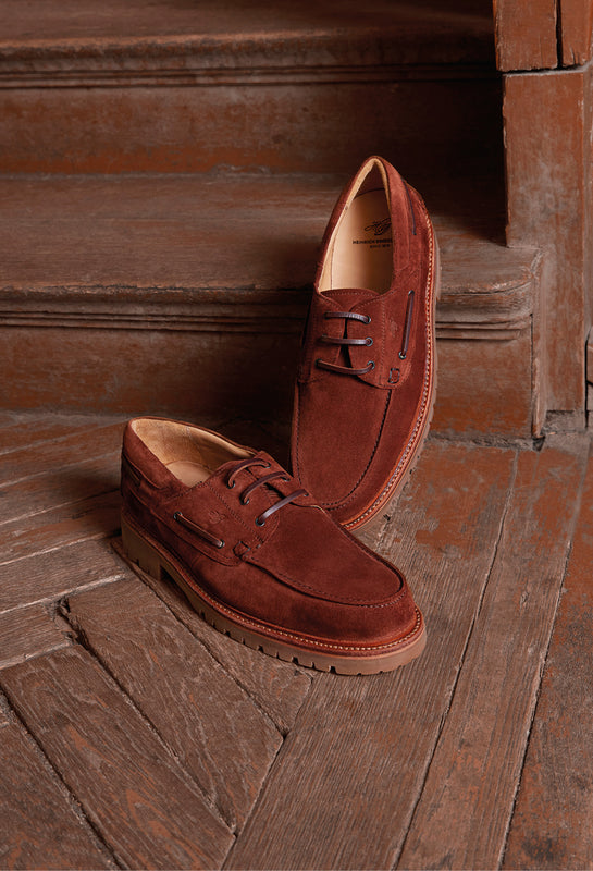 Die "Docksiders"-Kollektion verbindet klassischen Bootsschuh-Stil mit hochwertiger Handwerkskunst. Zwei markante Leisten definieren den Charakter: Miami, rahmengenäht mit robuster Gummiprofilsohle für langlebigen Halt, und Genua, mit flexibler, sommerlicher Gummisohle, gefertigt in Italien.