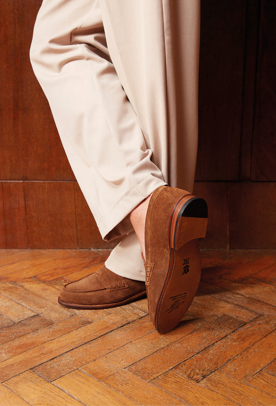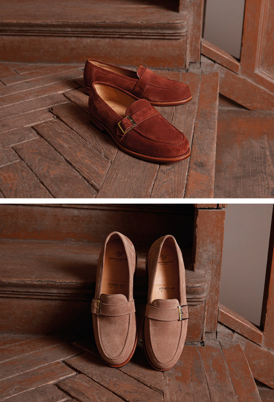 Feinstes Veloursleder schmiegt sich weich an den Fuß, während das vegetabil gegerbte Futterleder ein angenehmes Tragegefühl garantiert. Neue, modische Loafer-Designs mit edlen Details wie Tasseln und Zierschnallen runden die Kollektion stilvoll ab – perfekt für einen eleganten, modernen Look.