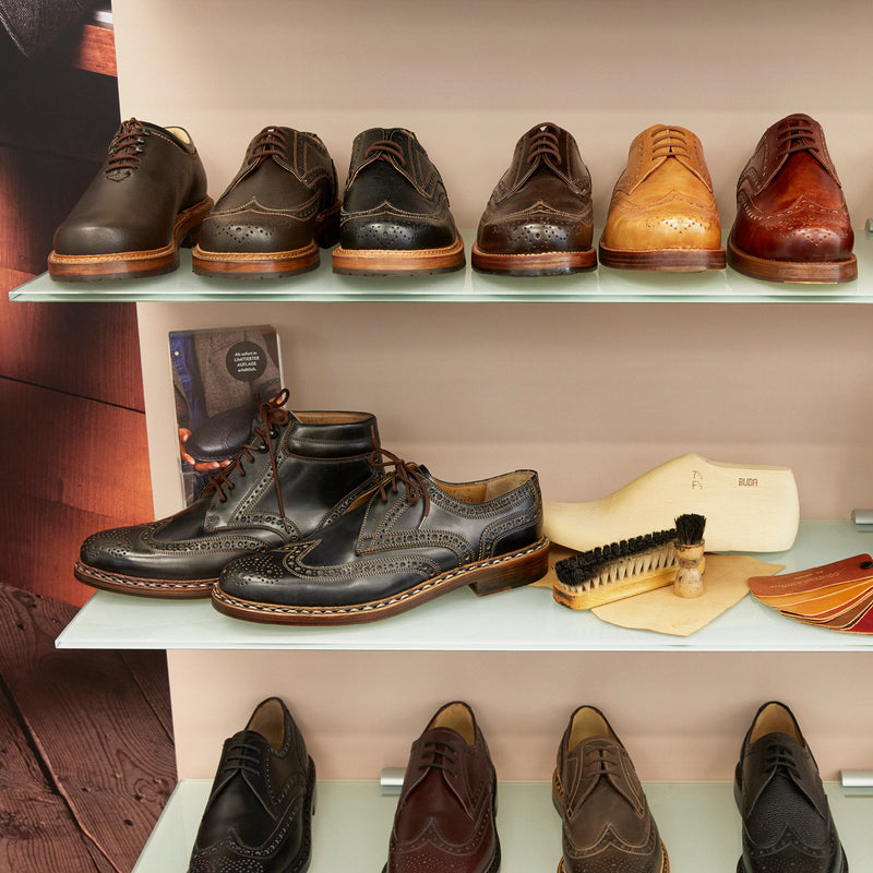 In unserem Store finden Herren eine erlesene Auswahl unserer Schuhe und Stiefel, die höchste Handwerkskunst, außergewöhnlichen Komfort und edle Materialien vereinen. Ob klassische Business-Schuhe, elegante Loafer oder stilvolle Freizeitmodelle – jedes Paar verkörpert die unverkennbare Handschrift unserer über 140-jährigen Tradition. Darüber hinaus führen wir exklusive Pflegeprodukte, Ledergürtel und Accessoires, die Ihr Outfit stilvoll ergänzen. Und für Schnäppchenjäger haben wir auch B-Ware-Modelle unserer Schuhe im Angebot.