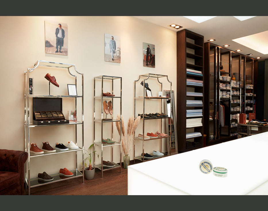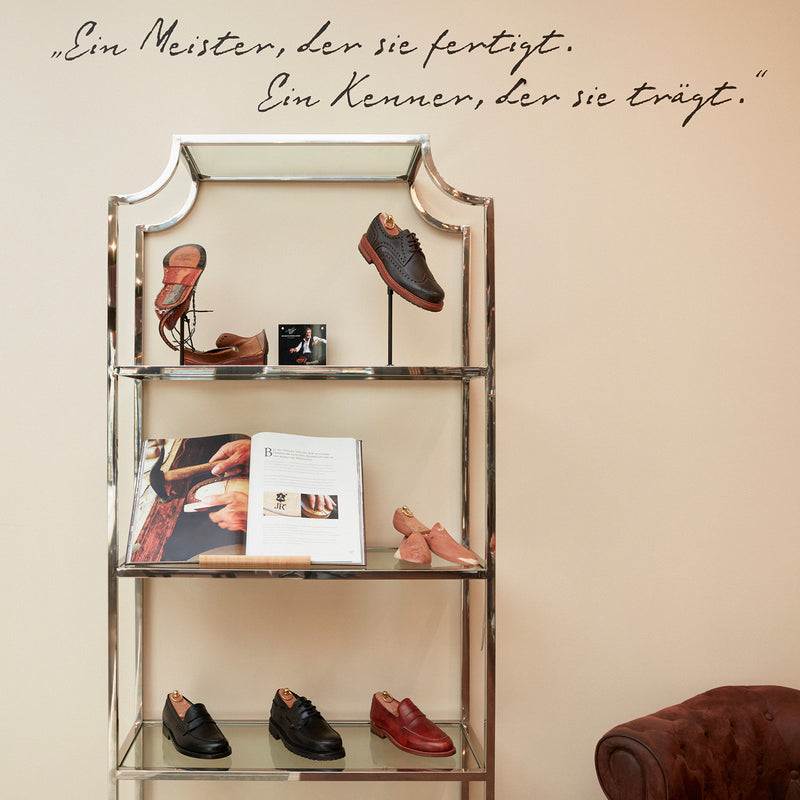 Handwerkskunst, Mode und Lifestyle verschmelzen zu einem einzigartigen Konzept. Neben unseren ikonischen Herrenschuhen finden Sie hier maßgeschneiderte Anzüge, einen modernen Friseursalon sowie eine stilvolle Bar mit ausgewählten Cocktails.