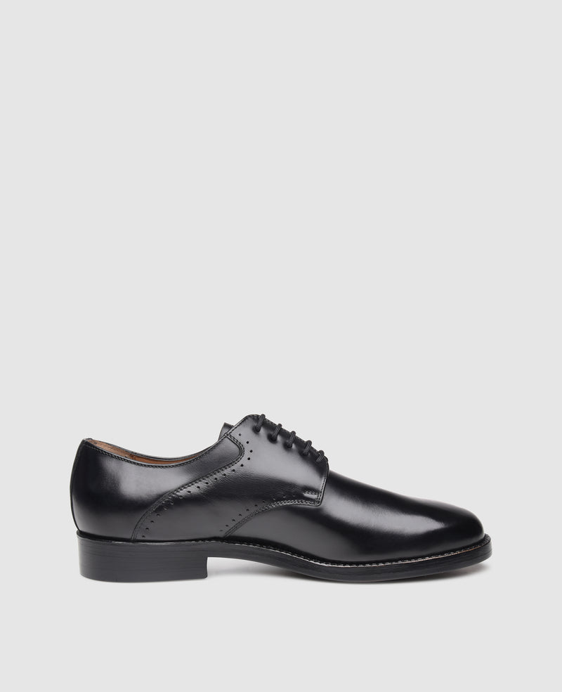 Ein perfektes Ensemble aus Geradlinigkeit und einem Hauch Verspieltheit. Der London Plain BC überzeugt durch die charakteristisch einfache Linienführung eines Derby mit offener 5-Loch-Schnürung. Einzig auf den aufgesetzten Quartieren sorgt entlang der Schaftteilkanten ein dezentes Lochmuster für Zierde. Das feine Boxcalf Leder des Schafts edelt den rahmengenähten Schnürer zusätzlich.Handgefertigt auf dem komfortablen London Leisten ist er ein idealer Alltagsbegleiter, auch für Herren mit einem etwas breiteren Fuß. Rahmengenäht in unserer Budapester Manufaktur versprüht er höchste Schuhmacherkunst vom Schaft bis zur Sohle. Diese stammt von der Traditionsgerberei Rendenbach aus Trier und wird für ihre Langlebigkeit gerühmt. Unterstützt wird die gestuppte Doppelsohle aus Leder von einer dezenten 3er-Nagelung.
